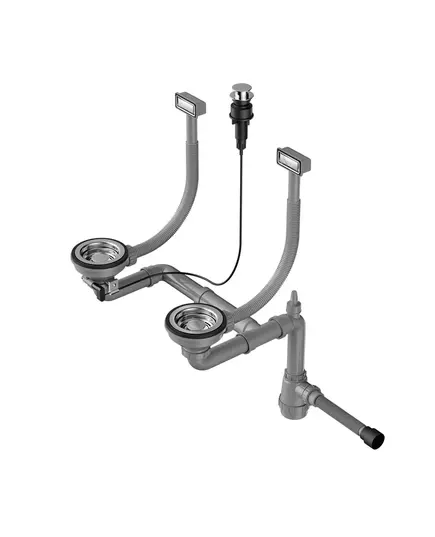 Арматура с клапаном-автоматом для двухчашевых моек с прямоугольными переливами Omoikiri WK-2-A-IN