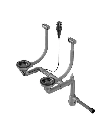 Арматура с клапаном-автоматом для двухчашевых моек с прямоугольными переливами Omoikiri WK-2-A-IN