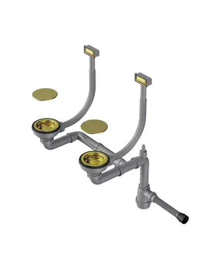 - Арматура для двухчашевых моек с прямоугольными переливами, декоративными решетками и декоративными накладками.