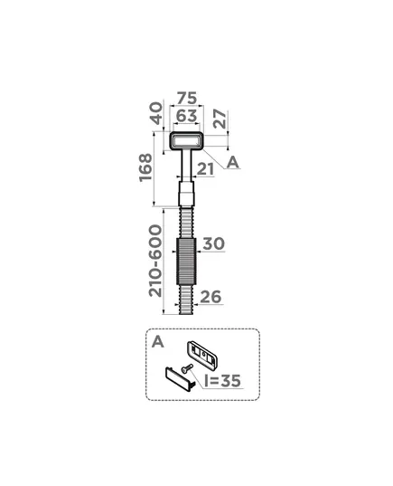 - Сменный прямоугольный перелив для арматуры серии WK подходит для моек с прямоугольным переливом.