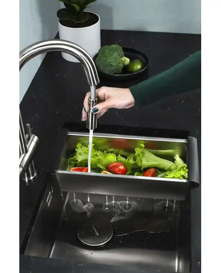 - Коландер может крепиться в чаше мойки, либо на ее крыле.