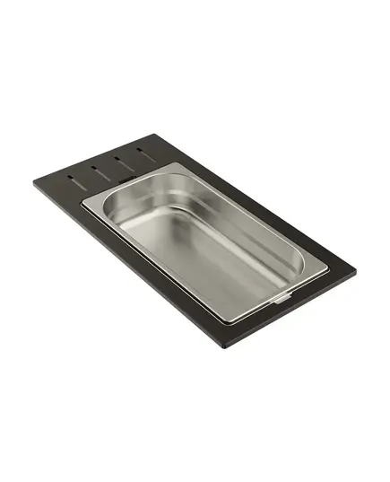 • Чаши свободно вынимаются из пластиковой подставки и перемещаются, а конструкция подставки разработана таким образом, чтобы ее можно было удобно разместить на внутренних ступенчатых направляющих моек: Sintesi 86, Sintesi 100 и Sintesi 116.