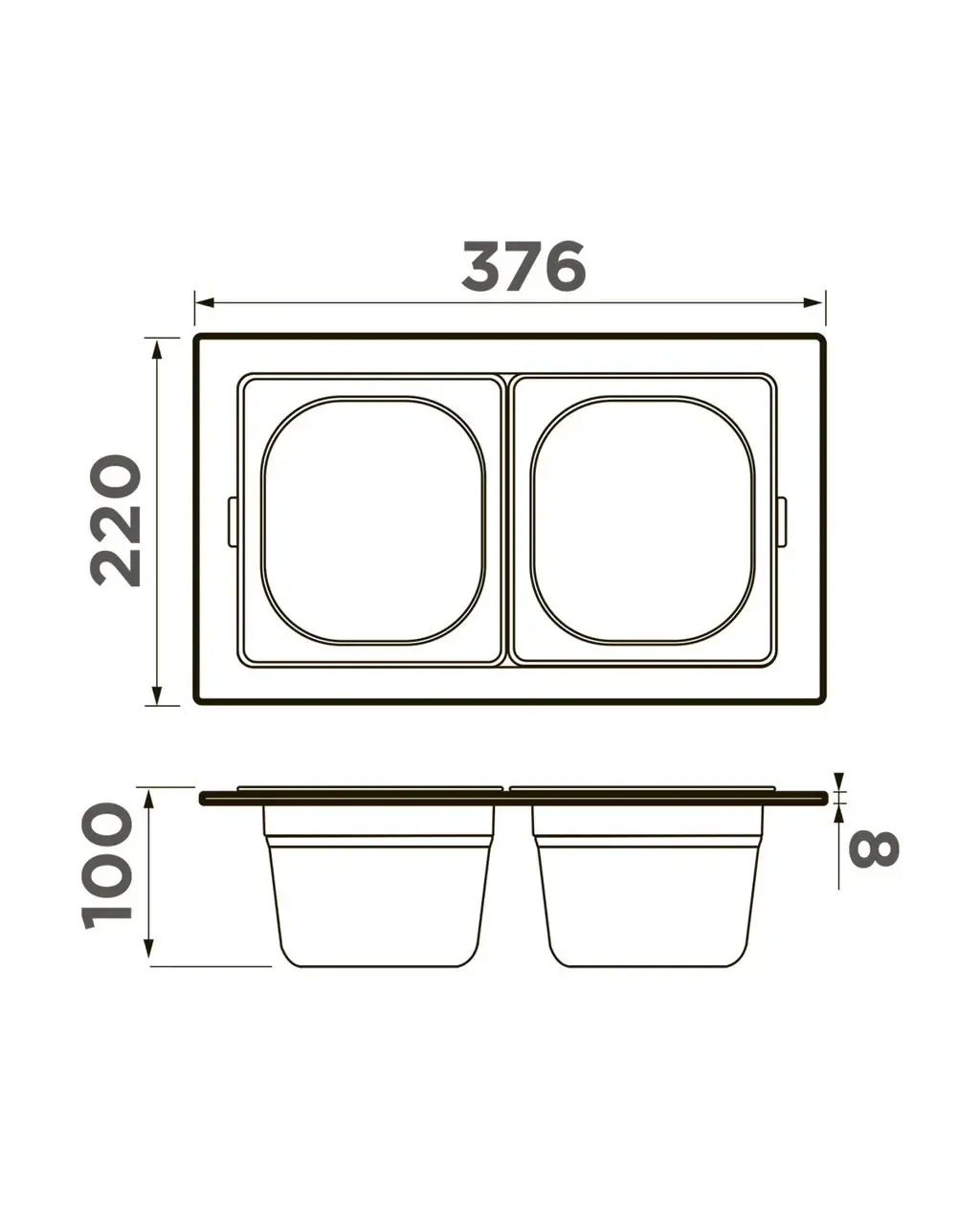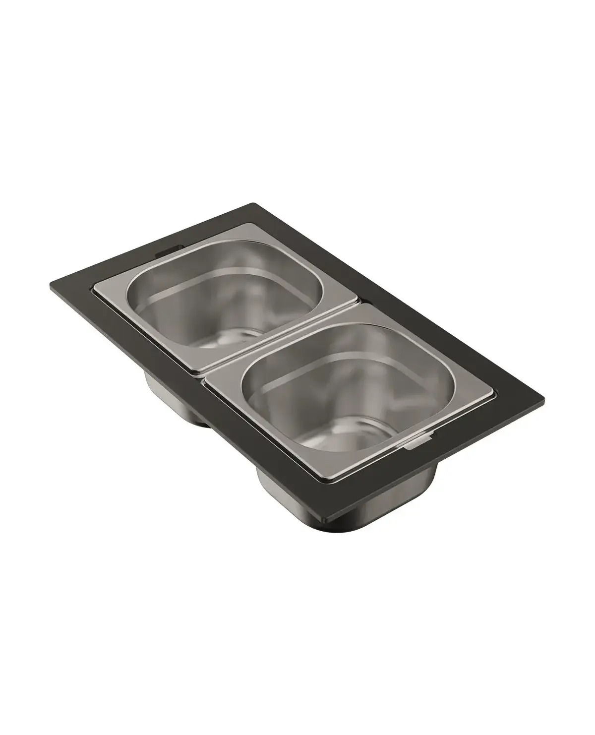• Контейнеры коллекции DC представляют собой различные конфигурации, состоящие из нескольких элементов: одной, двух или трех чаш, изготовленных из нержавеющей стали и фиксирующей подставки, изготовленной из высокопрочного HPL пластика.