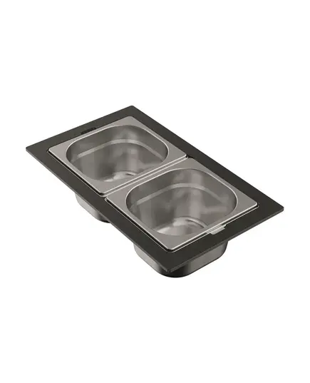 • Чаши свободно вынимаются из пластиковой подставки и перемещаются, а конструкция подставки разработана таким образом, чтобы ее можно было удобно разместить на внутренних ступенчатых направляющих моек: Sintesi 57 и Sintesi 79.