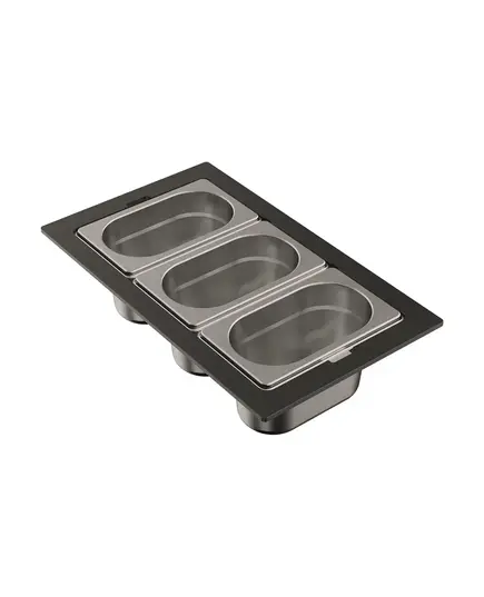 - Контейнеры коллекции DC представляют собой различные конфигурации, состоящие из нескольких элементов: одной, двух или трех чаш, изготовленных из нержавеющей стали и фиксирующей подставки, изготовленной из высокопрочного HPL пластика.