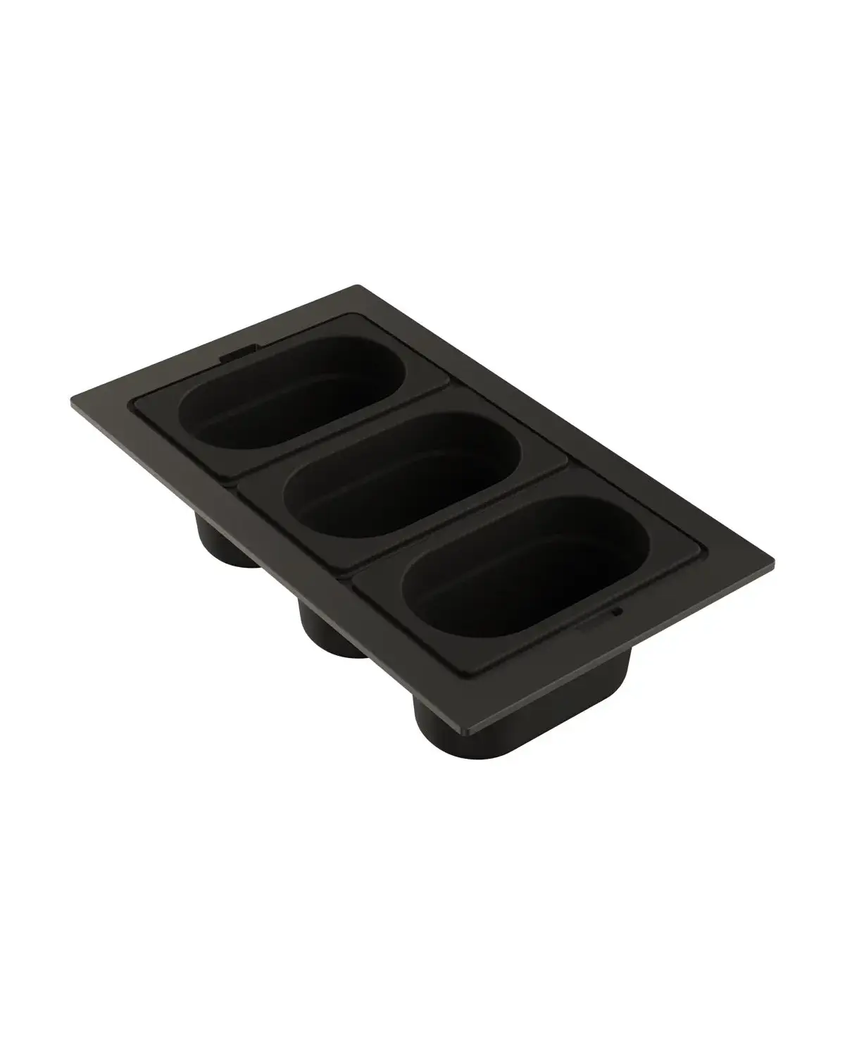 • Чаши свободно вынимаются из пластиковой подставки и перемещаются, а конструкция подставки разработана таким образом, чтобы ее можно было удобно разместить на внутренних ступенчатых направляющих моек.