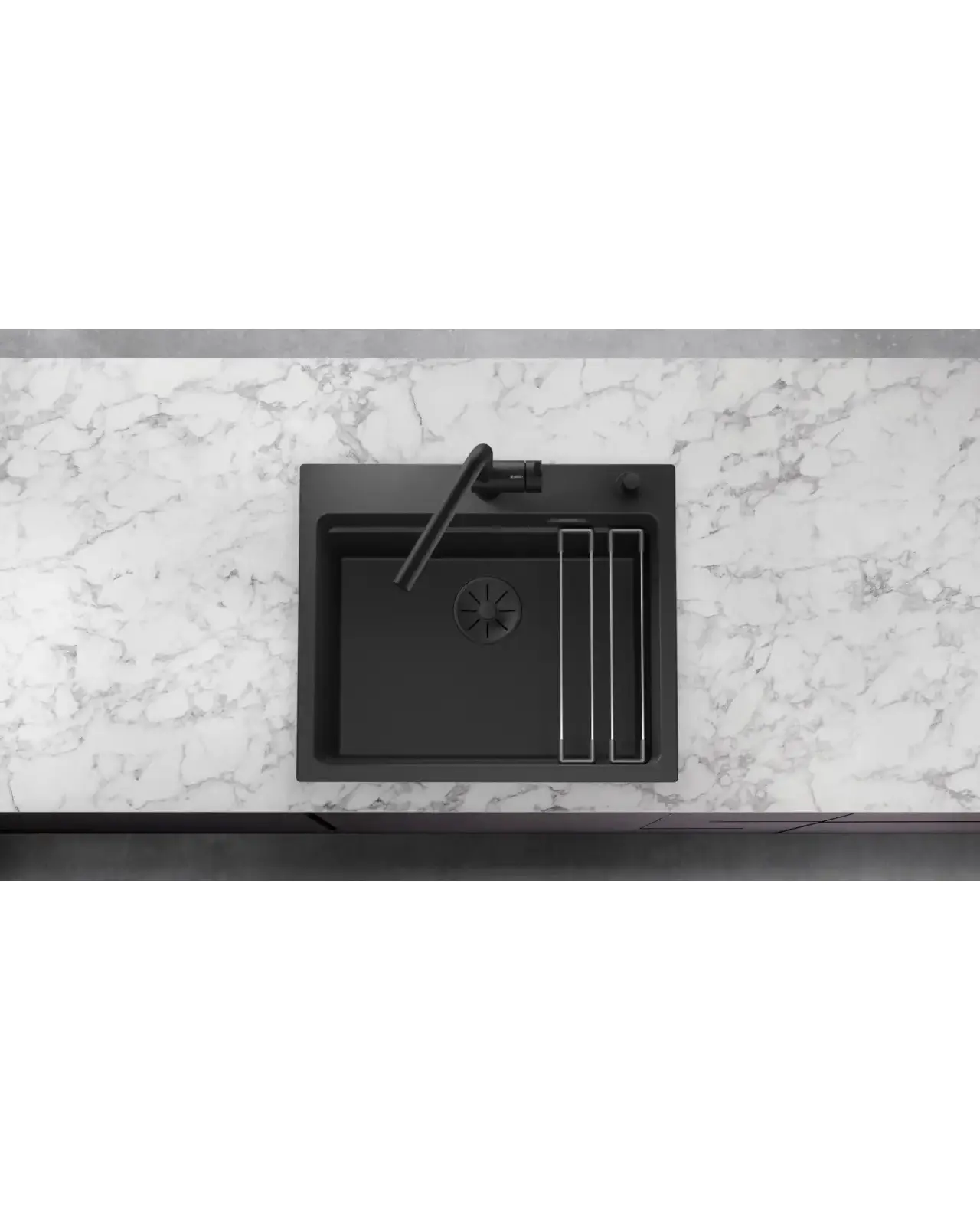 Отводная арматура Blanco InFino® с переливом, цвет черный матовый для двух чаш.