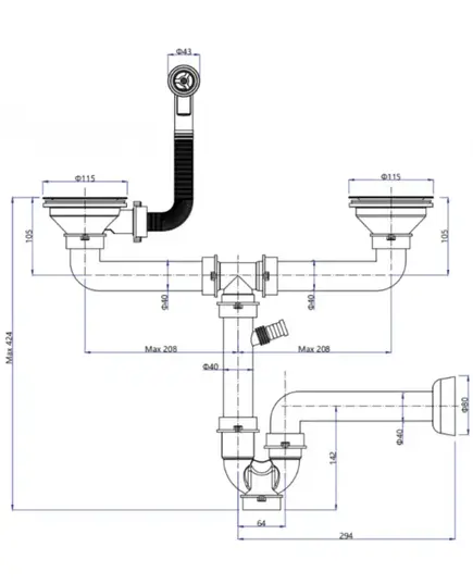 RIVELATO Cифон двойной 3 1/2" с круглым переливом
