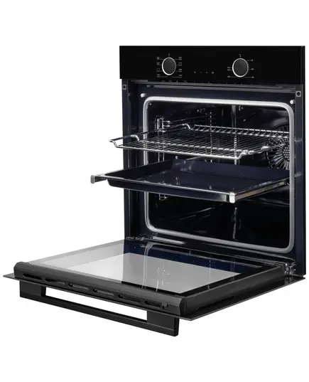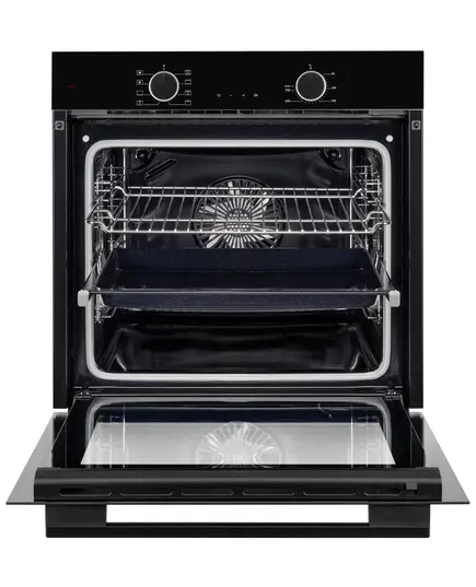 На одном из пяти уровней приготовления находятся телескопические направляющие. Они освободят ваши руки, например, если потребуется посыпать запеканку сыром, то не придется придерживать противень. Не нужно открывать дверцу, чтобы проверить готовящееся блюдо — у вас будет отличный обзор камеры за счет внутреннего стекла. Кухонная техника оборудована интеллектуальным сенсорным LED-дисплеем. Электронная система управления эффективна и требует минимального вмешательства пользователя. Дисплей включает полную индикацию хода текущих программ, часы, таймер и др.