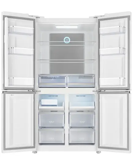 Холодильник Side by Side Kuppersberg NFFD 183 WG выполнен в благородном белом цвете и имеет 4 двери. Такой дизайн является современным, поэтому подойдет к любому кухонному интерьеру и дополнит его. Устройство оборудовано электронным дисплеем с цифровой индикацией температуры. Помимо этого, светодиодная подсветка ярко освещает внутреннее пространство камеры, отличается долговечностью и потребляет минимум электроэнергии. Общий полезный объем товара составляет 542 л, из которых на холодильное отделение относится 367 л, а на морозильное — 175 л. Он отлично подойдет для семьи из 4-5 человек.