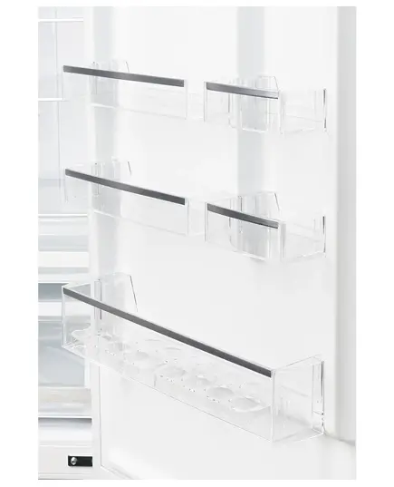Полезный объем холодильного отделения составляет 257 л, поэтому вы можете не беспокоиться, что вам не хватит места для продуктов — это отличный вариант для большой семьи. Внутренняя камера предусматривает 4 полки из закаленного стекла, 4 полки на двери и 1 ящик для овощей и фруктов. Внутренние стенки устройства покрыты особым материалом, замедляющим размножение вредных микроорганизмов. Он помогает сохранять свежеть мяса, овощей, фруктов и других продуктов, хранящихся без вакуумных упаковок.