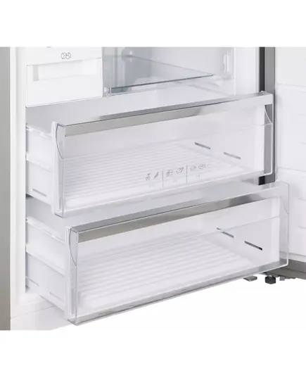 Зона свежести — это специальное пространство в холодильной камере, где создаются оптимальные условия для хранения: температура и влажность. Она предназначена для длительной сохранности скоропортящихся продуктов. Двухкамерный холодильник Купперсберг NRV 192 WG имеет технологию SuperFrost. Температура при этом быстро понижается до −32 градусов, после того, как процесс замораживания завершится, прибор возвращается в обычный режим с экономным потреблением электроэнергии. Ко внутренним настройкам модели относится также автоматическое размораживание. Морозильная камера предусматривает два ящика.