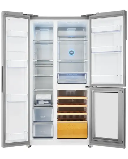 Холодильник Side by Side Kuppersberg RFWI 1890 SIG имеет 3 температурные зоны среди них имеется винное отделение. Система размораживания NoFrost циркулирует холодный воздух и не оставляет ледяную шубу на стенках устройства. Есть зона свежести в которой вы можете хранить фрукты и овощи.
