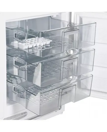 Встраиваемая морозильная камера Kuppersberg VBMF 96 выполнена в белом цвете и подойдет даже для маленьких помещений и студий. Такой дизайн является универсальным, поэтому прибор отлично впишется в любой кухонный интерьер и подчеркнет его индивидуальность. Габариты оборудования составляют: высота — 81,2 см, ширина — 59,5 см, глубина — 54,8 см. Полезный объем составляет 93 л. Внутренняя камера предусматривает 3 ящика и лоток для льда. Предусмотрена механическая регулировка и контроль температуры. Логичный выбор настроек делает прибор удобным и понятным в использовании.