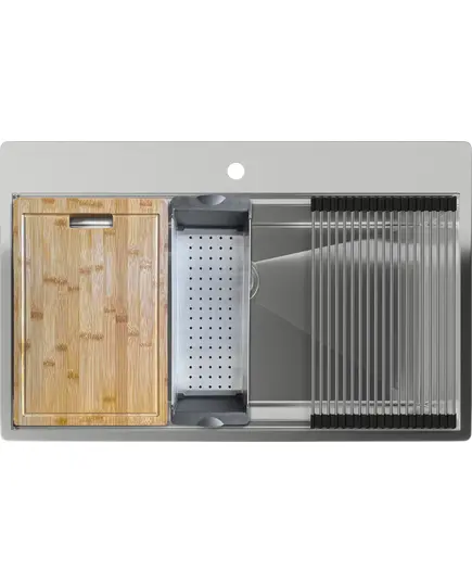 БрендRivelato МатериалНержавеющая сталь ЦветНержавеющая сталь Размер мойки,мм800х510 Размер чаши,мм760х370 Размер монтажной тумбы,см90 см Тип монтажаНакладной