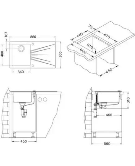 Размер мойки,мм