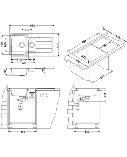 Размер мойки,мм