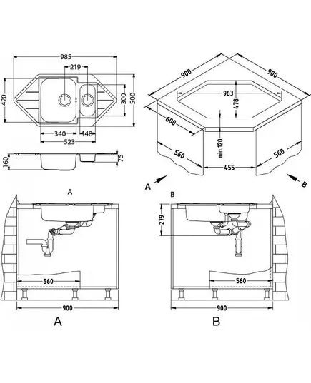 Размер мойки,мм