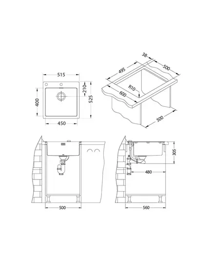 Размер мойки,мм
