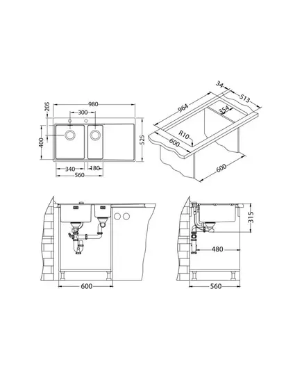 БрендAlveus МатериалНержавеющая сталь ЦветНержавеющая сталь Размер мойки,мм980х525 Размер чаши,мм400х340 Размер монтажной тумбы,см60 см Тип монтажаНакладной / Вровень со столешницей