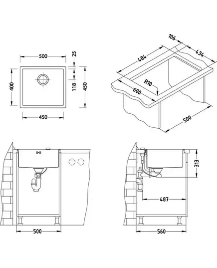 Alveus QUADRIX 40 BRS-90 500X450X200 в комплекте с сифоном 1130551