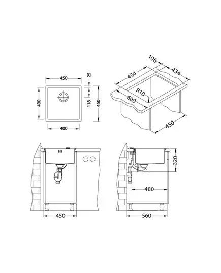 Размер мойки,мм