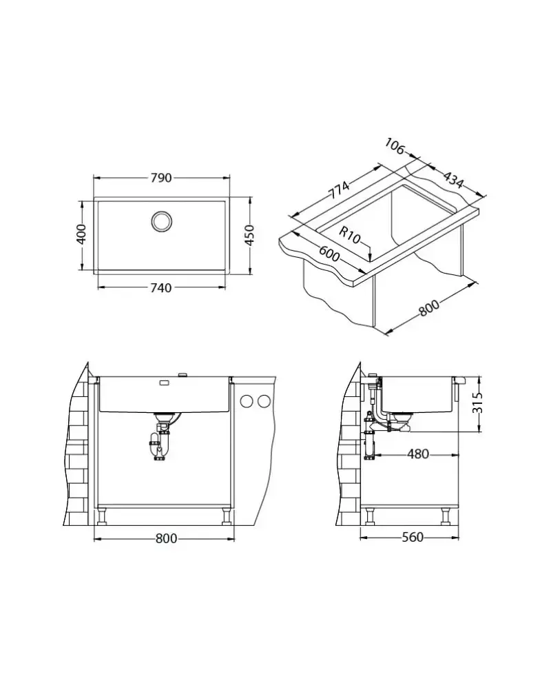 Размер мойки,мм