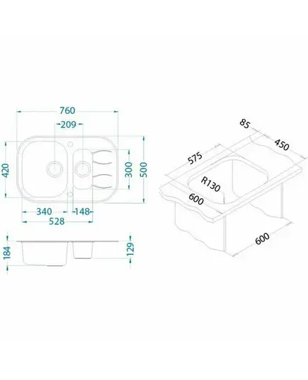 Размер мойки,мм