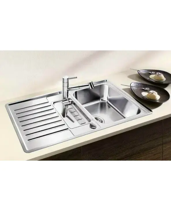 БрендBlanco МатериалНержавеющая сталь ЦветНержавеющая сталь Размер мойки,мм915х510 Размер чаши,мм420х340 Размер монтажной тумбы,см50 см Тип монтажаНакладной / Вровень со столешницей