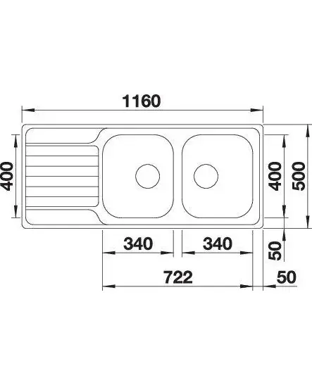 БрендBlanco МатериалНержавеющая сталь ЦветНержавеющая сталь Размер мойки,мм1160x500 Размер чаши,мм340х400/340х400 Размер монтажной тумбы,см80 см Тип монтажаНакладной Гарантия 2 года