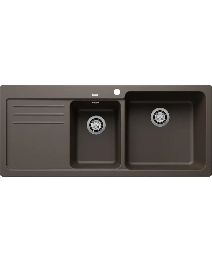 БрендBlanco МатериалSilgranit ЦветКофе Размер мойки,мм1160x500 Размер чаши,мм439x430/280x430 Размер монтажной тумбы,см80 см Тип монтажаНакладной Расположение чашиЧаша справа Гарантия 2 года