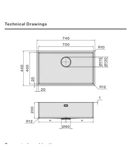 • Глубина чаши 200 мм