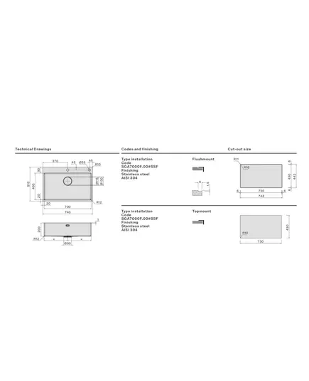 Мойка GARDA 70 CM INOX (УСТАНОВКА НА СТОЛЕШНИЦУ ИЛИ В ОДИН УРОВЕНЬ)