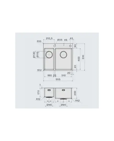 • Радиус внутренних углов 12 мм