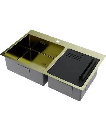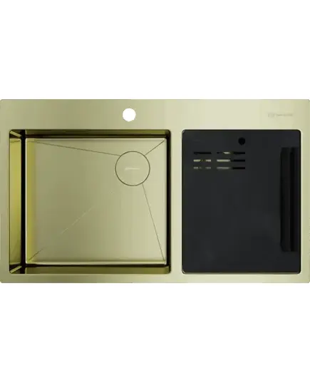 БрендOmoikiri МатериалНержавеющая сталь ЦветСветлое золото Размер мойки,мм860х510 Размер чаши,мм450x400 Размер монтажной тумбы,см90 см Тип монтажаНакладной Гарантия 15 лет
