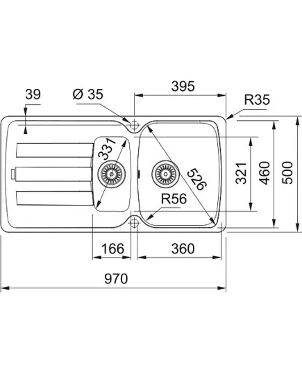 Размер мойки,мм