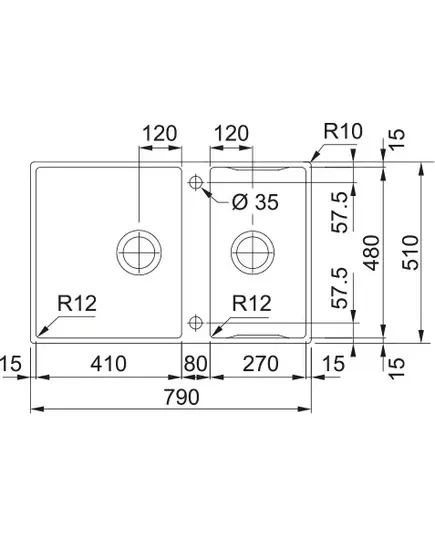Размер мойки,мм