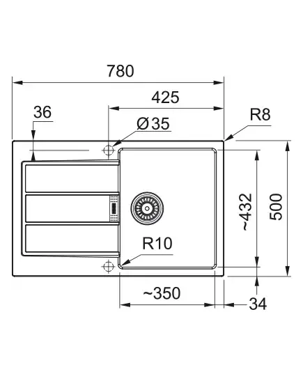 Размер мойки,мм