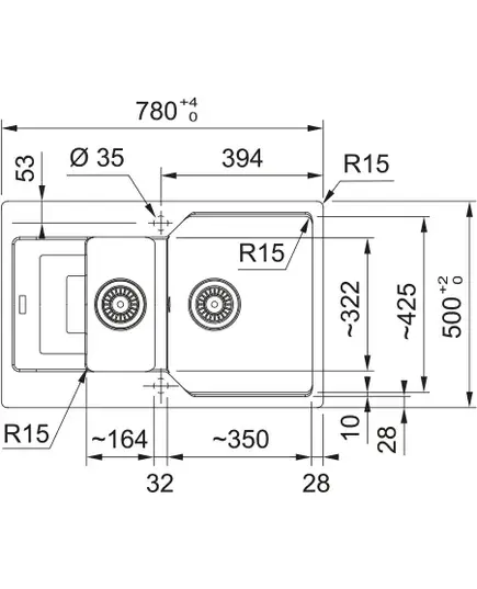 Размер мойки,мм
