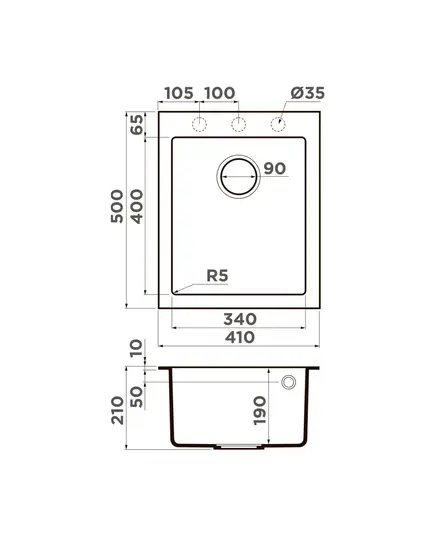 Размер мойки,мм