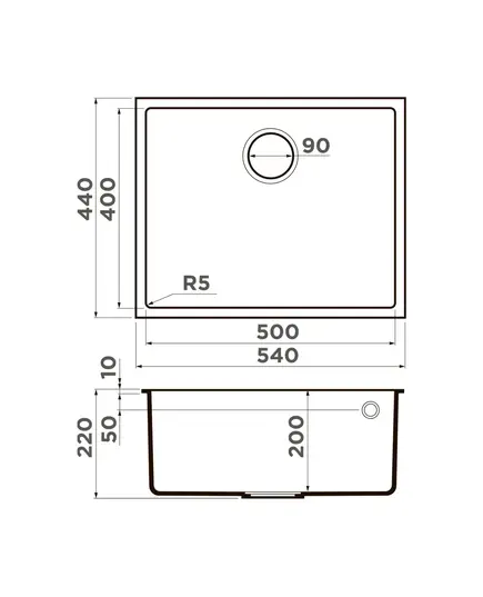 • Габариты мойки 540х440 мм — комфорт для широких столешниц.
