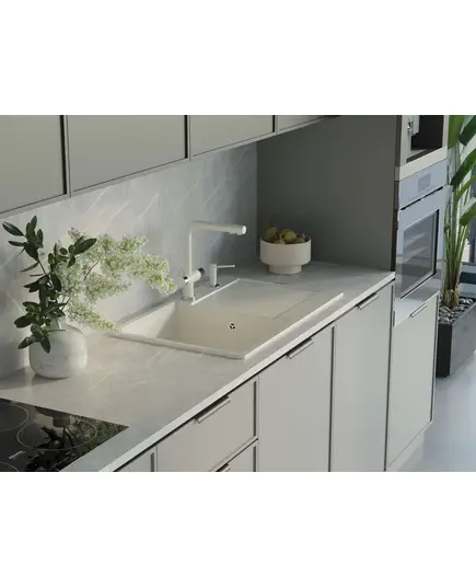 - Благодаря этому элементу мойка обретает устойчивость к воздействию различных кислот и щелочей, что гарантирует ее неизменный внешний вид.