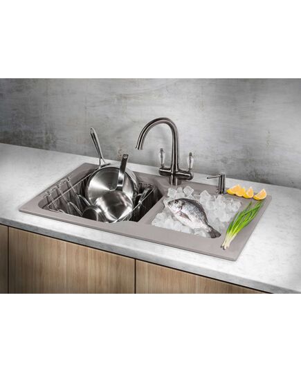 БрендOmoikiri ЦветЭверест Размер мойки,мм860х500 Размер чаши,мм405x420 Размер монтажной тумбы,см90 см Тип монтажаНакладной Гарантия 15 лет