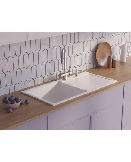 - Благодаря этому элементу мойка обретает устойчивость к воздействию различных кислот и щелочей, что гарантирует ее неизменный внешний вид.