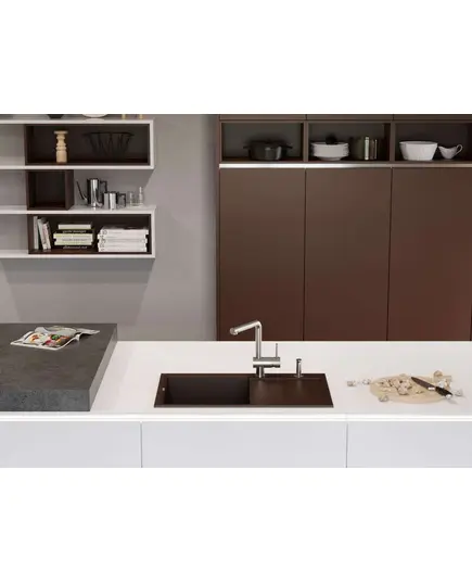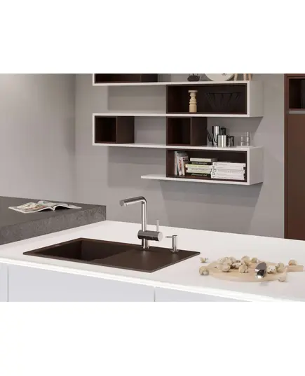 - Благодаря этому элементу мойка обретает устойчивость к воздействию различных кислот и щелочей, что гарантирует ее неизменный внешний вид.