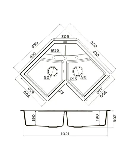 - Благодаря этому элементу мойка обретает устойчивость к воздействию различных кислот и щелочей, что гарантирует ее неизменный внешний вид.
