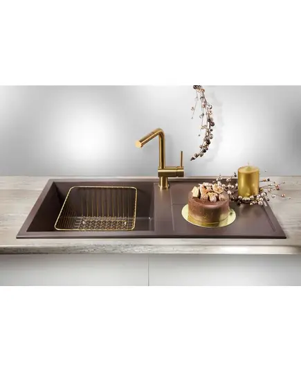 - Благодаря этому элементу мойка обретает устойчивость к воздействию различных кислот и щелочей, что гарантирует ее неизменный внешний вид.