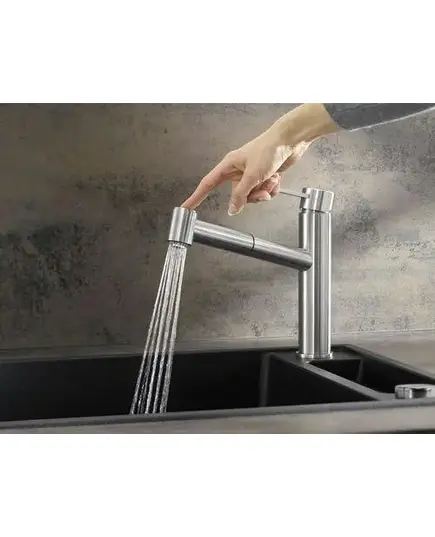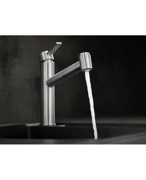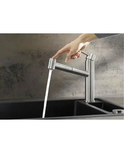 • Также доступна модель с выдвижным изливом и сменой режима струя/душ