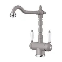Смеситель изготовлен из высококачественной латуни с никель-хромовым покрытием без содержания свинца, благодаря чему он сохраняет воду чистой и здоровой.  Латунь обладает повышенной прочностью и устойчива к деформациям, благодаря чему смеситель выдерживает высокие эксплуатационные нагрузки, не расшатывается и не протекает.  Аэратор произведен из пластика, благодаря чему на нем никогда не появятся известковый налет и ржавчина.   Уход за смесителем   Не используйте чистящие средства, содержащие аммиак, отбеливатель или кислоту.  После использования необходимо смыть остатки грязи с поверхности смесителя, затем протереть сухой губкой или тканью.   Перечисленные выше указания по уходу относятся только к кухонным смесителям.   * Конечный результат очистки всегда зависит от жесткости и температуры воды, точного количества используемого чистящего средства и текущего состояния продукта, подлежащего очистке.   Совет по уходу: После испарения воды на поверхности смесителя, образуются следы.   Чтобы избежать этого и сохранить красивый вид Вашего смесителя, необходимо протирать его чистой мягкой тканью или губкой после каждого использования.