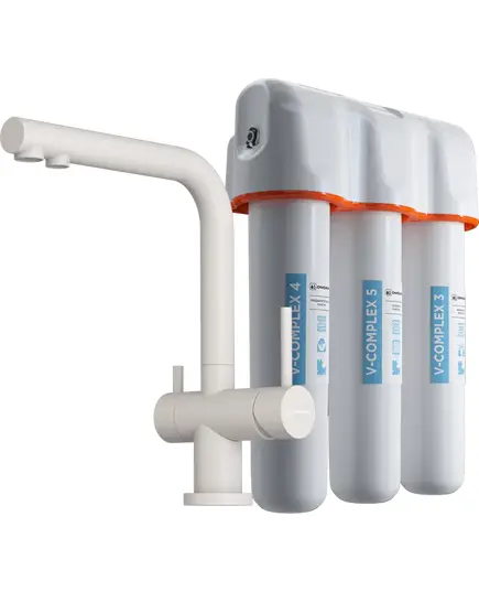 Комплект смеситель Nagano-C латунь/хром + водоочиститель PURE DROP Lite. Смеситель Nagano с функцией подключения фильтра для очистки воды - технология PURE LIFE. Соединительные шланги: усиленная 3х слойная цветная подводка, полный комплект соединений для подключения фильтров всех производителей. Набор креплений: металл.                          Водоочиститель OMOIKIRI Pure drop Lite с трехступенчатой системой очистки очищает воду от: